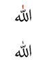 The “dagger Āalif” (Āalif Ќanjariyyaŧ / أَلِف خَنْجَرِية) is an archaic spelling of Āalif which still exists in a few common words, and is pronounced in exactly the same way as a regular Āalif. When written, it appears as a miniature Āalif above the letter rather than on the line. However, it is usually omitted, in printed texts and handwriting alike. One notable exception is the word الله, meaning “God”, which often retains the dagger Āalif in print.